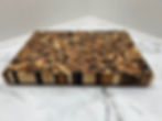 End grain boards are made by cutting the pieces of lumber into blocks and gluing the blocks together with the end grain up, forming the top surface of the cutting board. This block construction makes the butcher block very strong and durable. During cutting and chopping, the end grain wood fibers absorb the impact of the knife blade so the block is resistant to nicks and gouges. End grain fibers run vertically allowing the knife blade to cut between them giving them a self healing factor as they close back together.